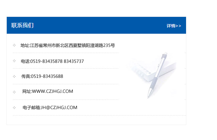 地址:常州市新北區友邦商務大廈1幢16、17層  電話:0519-85101652  傳真:0519-85112595  郵編:213022  網址:www_cz-jiayue_cn.yuehurld.com  郵箱:xiajifengaa@163.com